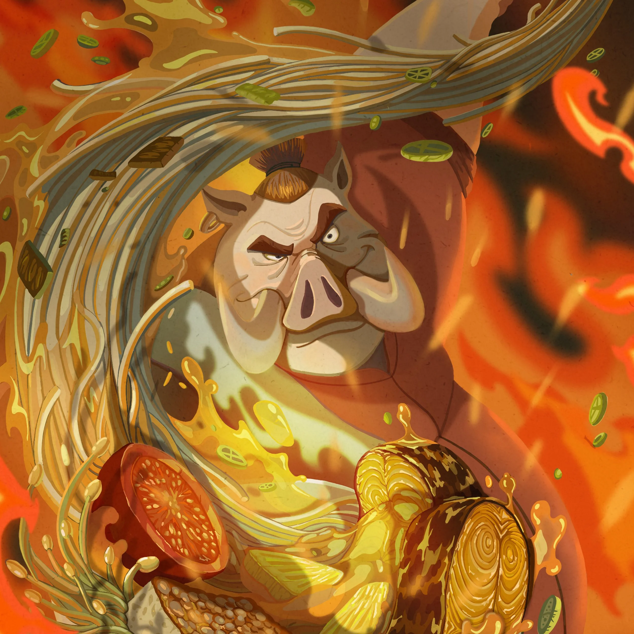 Nobody really knows how old Uncle Pig is but he has lived in Linh World for a very long time so people all call him “Uncle”. Uncle Pig Chef is truly a “Master Chef”. People say that one of the things you must do in life is trying Uncle Pig’s dishes once. Uncle Pig owns a small restaurant in a small alley but still enough for a long queue of guests. He is very serious with his cooking career. Each meal is nothing less than a fight for he is always whole-hearted in making any dishes. His signature dish is Magic Tuna Noodle Soup.